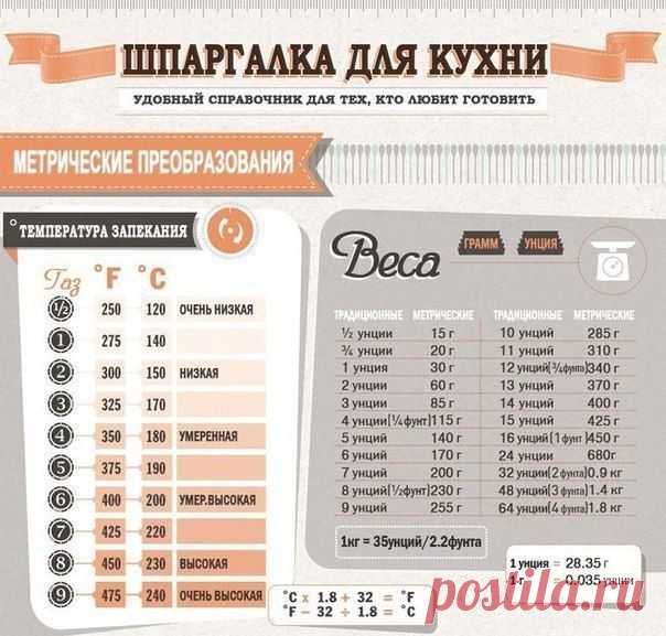 Специальная шпаргалка для кухни. Сохраните, чтобы не забыть! | Хитрости Жизни
