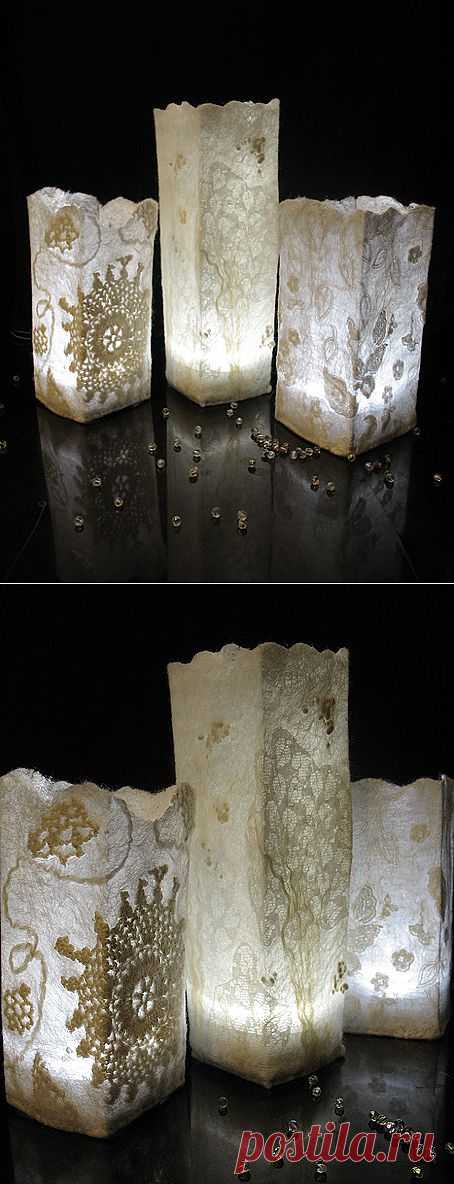 Шерстяные светильники "Морозные узоры", делаем абажур в технике нунофелтинг.МК.