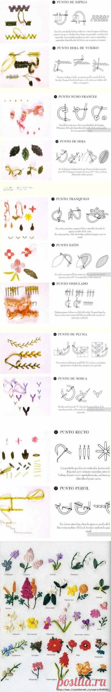 Вышивка лентами: интересные стежки