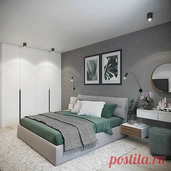 Спальня в серых тонах: как подобрать мебель к обоям под бетон | Заметки дизайнера Dia | Яндекс Дзен