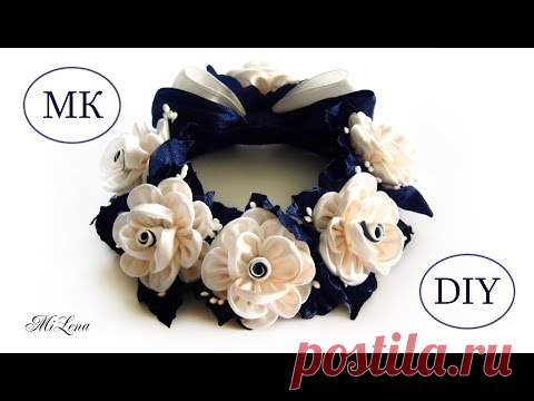 РЕЗИНКА НА ПУЧОК, МК / DIY Kanzashi Flower Bun Garland Headband / DIY Hair Bun Scrunchies Headband