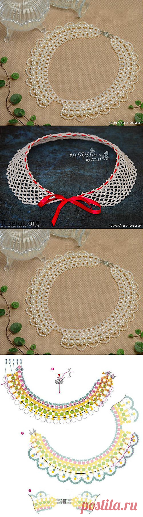 Жемчужный воротничок из бисера и бусин | Бисер|Магия бисера
