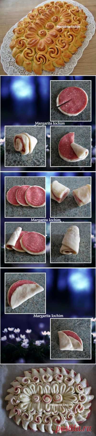 Пирог из дрожжевого теста с колбасой «Салфетка» : Выпечка несладкая