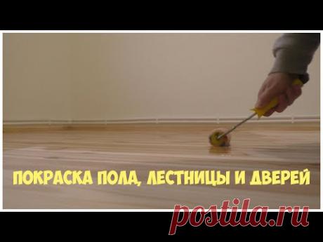 Покраска деревянного пола, лестницы и дверей лаком - YouTube