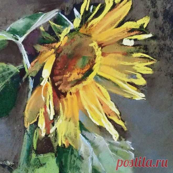 Подсолнух ждет третий день моего внимания, натура изрядно подвяла, а синоптики обещают затяжные дожди всю ближайшую неделю 😒☔ А вообще, желтый цвет почти не встречается в моих картинах, впрочем, как и в гардеробе 😀 С оранжевым тоже как-то не сложилось. Подсолнухи, скорее исключение 🌻🌻🌻 #дождливыебудни #подсолнух #осень #пастель