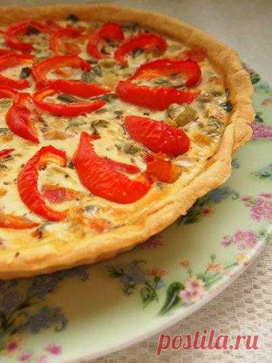 Киш с сельдереем,морковью,перцем и зеленым горошком.