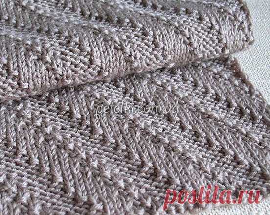 Набрать 33 п. и вязать по схеме 2, выполняя углы укороченными рядами, оставляя на вспом. спице в каждом лиц. р. с левой стороны 20 раз по 1 п. и затем возобновлять вязание каждой петли в обратном порядке. По достижении необходимой длины закрыть п. и закончить вязание.