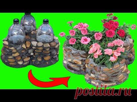 COMO HACER MACETAS DE CEMENTO Y PIEDRAS CON BOTELLAS DE PLÁSTICO - IDEAS MANUALIDADES PARA EL JARDIN