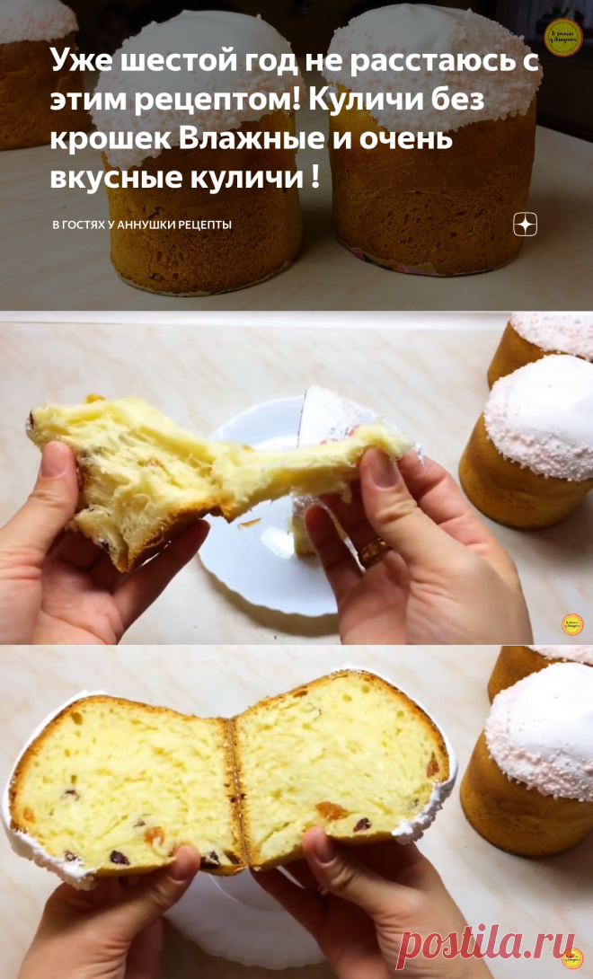 Уже шестой год не расстаюсь с этим рецептом! Куличи без крошек Влажные и очень вкусные куличи ! | В гостях у Аннушки Рецепты | Яндекс Дзен