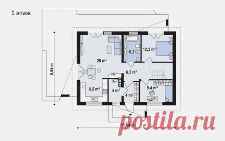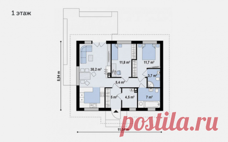 Проект одноэтажного дома ПМ1-101 для проживания семьи с двумя детьми.