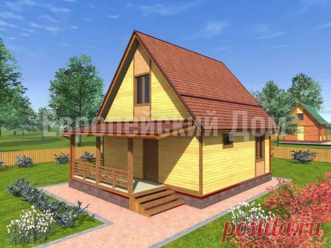 Индивидуальный проект деревянного дома с мансардой и террасой из оцилиндрованного бревна. Беларусь — Ecohome