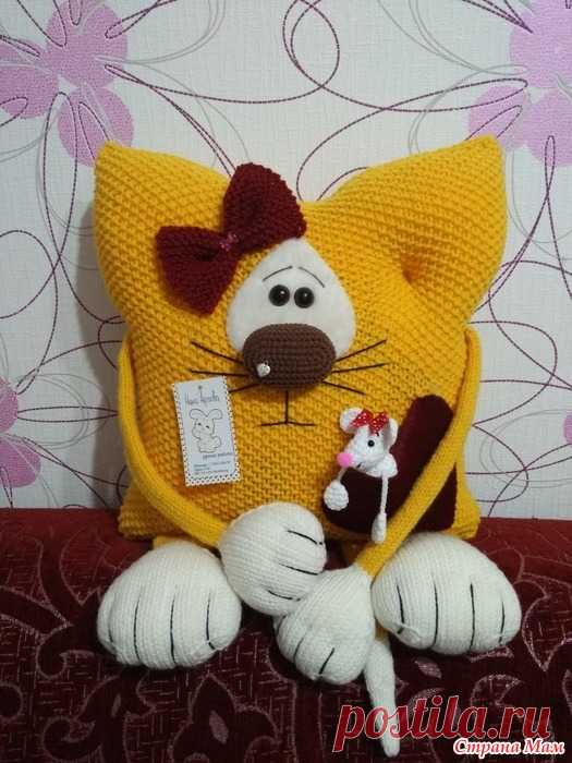 Котоподушка с мышкой (мастер-класс) Здравствуйте, мои дорогие мастерицы!!! Вот и дождались Вы моего мастер-класса Расскажу и покажу, как я вяжу такие подушечки. Автору, создавшему этот образ - огромное спасибо!!!