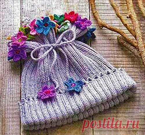 Детская шапочка с цветами спицами для девочки | ВЯЗАНИЕ ШАПОК: женские шапки спицами и крючком, мужские и детские шапки, вязаные сумки