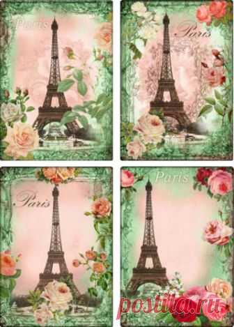 Vintage inspired Roses Eiffel Tower Paris green note cards set 8 with envelopes | eBay