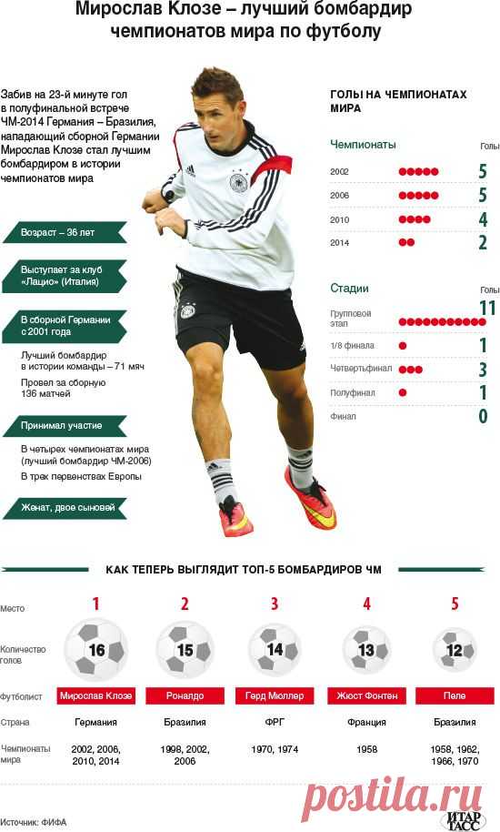 Мирослав Клозе – лучший бомбардир (Инфографика) / Евро-футбол.ру