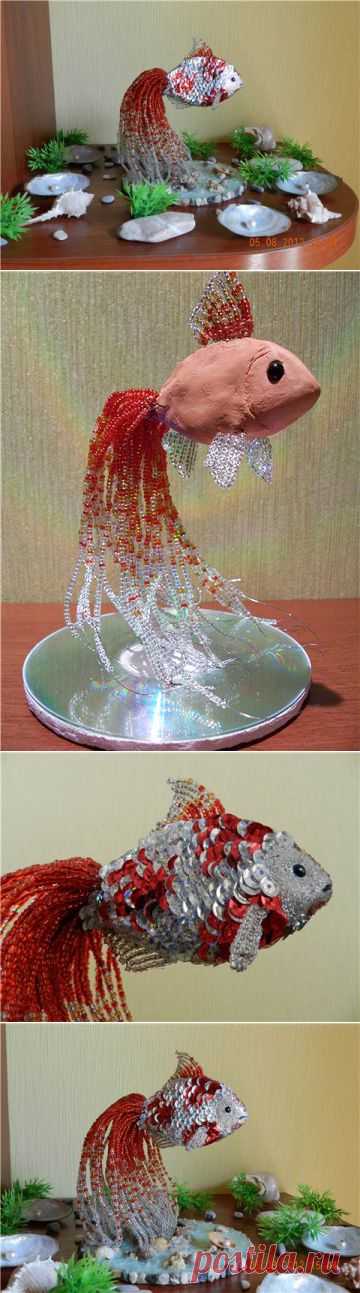 Золотая рыбка из бисера и пайеток