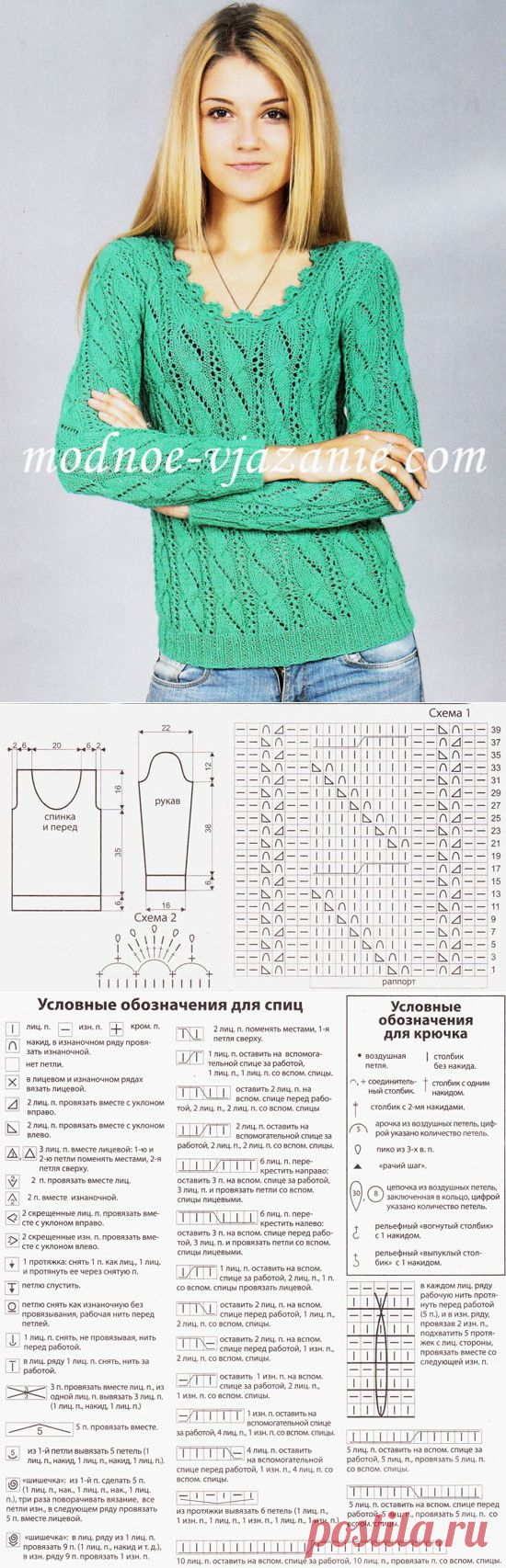 Ажурная зелень: женский пуловер, связанный на спицах | Своими руками