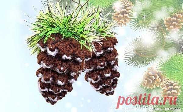 ВЯЗАНЫЕ ШИШКИ В СНЕГУ ДЛЯ НОВОГОДНЕЙ ЁЛКИ.