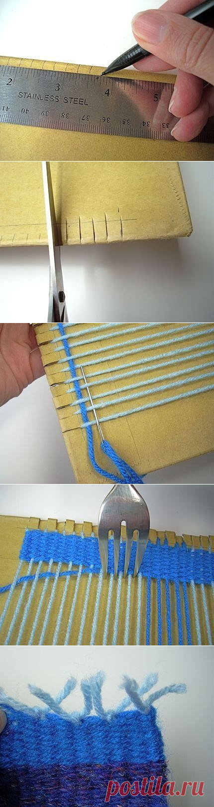 Картон и вилка вместо ткацкого станка.