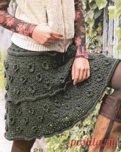 Филейная юбка с кокеткой из кос - Описание вязания, схемы вязания крючком и спицами | Узорчик.ру