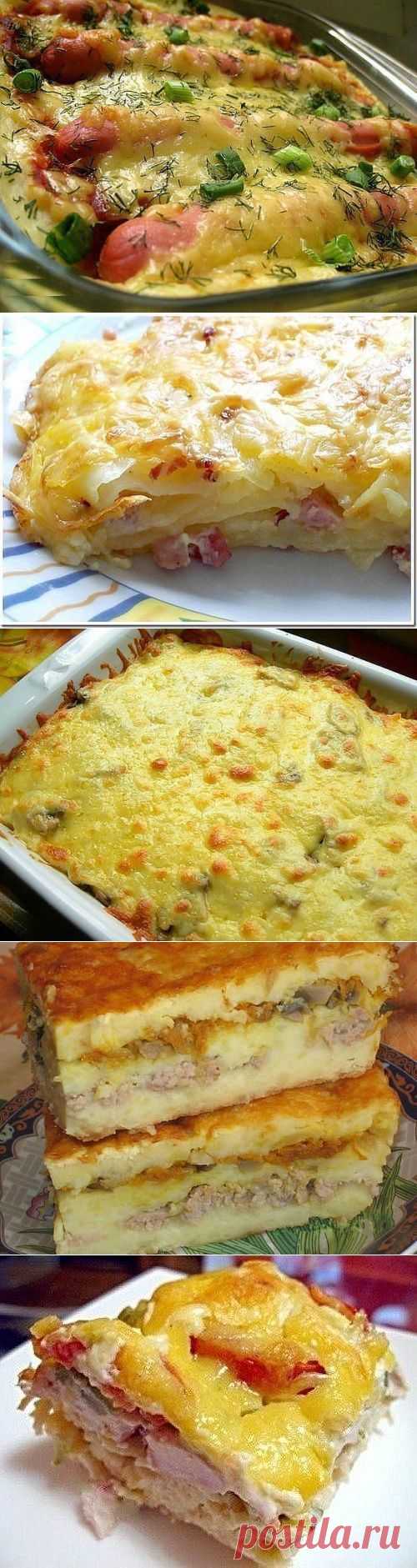 КАРТОФЕЛЬ - 7 РЕЦЕПТОВ !!! **Картофельная запеканка с сосисками и сыром, Простая, С курицей, Слоеная, С копчёным окороком, Французская, Запеканка -пирог.