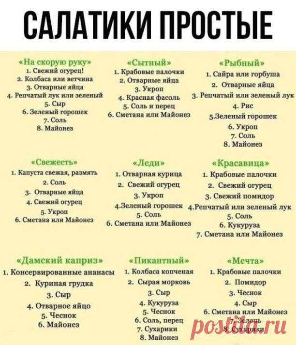 ПРОСТЫЕ РЕЦЕПТЫ ВКУСНЫХ САЛАТОВ К ЛЮБОМУ ПРАЗДНИКУ И НА КАЖДЫЙ ДЕНЬ