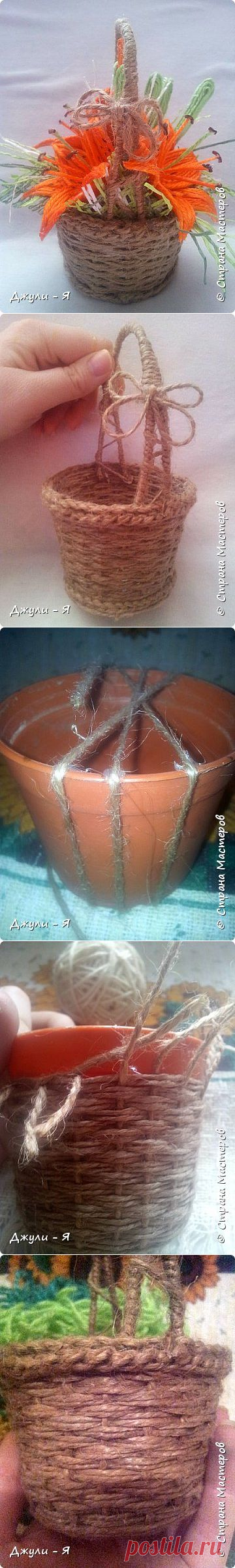 Плетение корзинки из шпагата для подарков к 8 марта. Мастер-класс