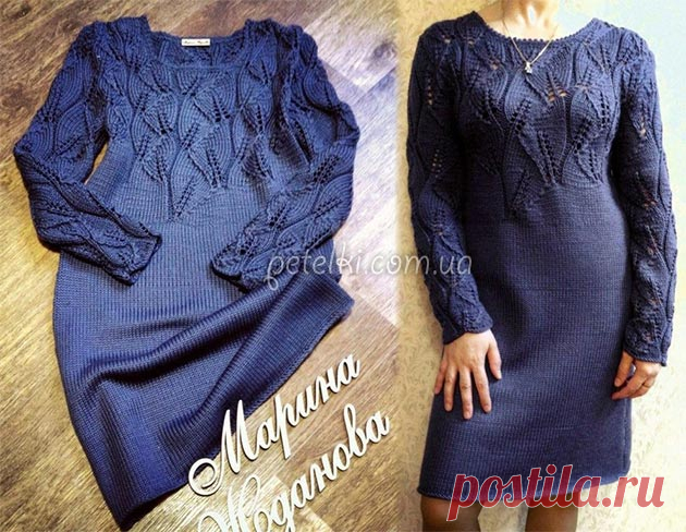 Вязаное спицами платье с карманами. Модное платье спицами с косами схема | Шкатулка рукоделия