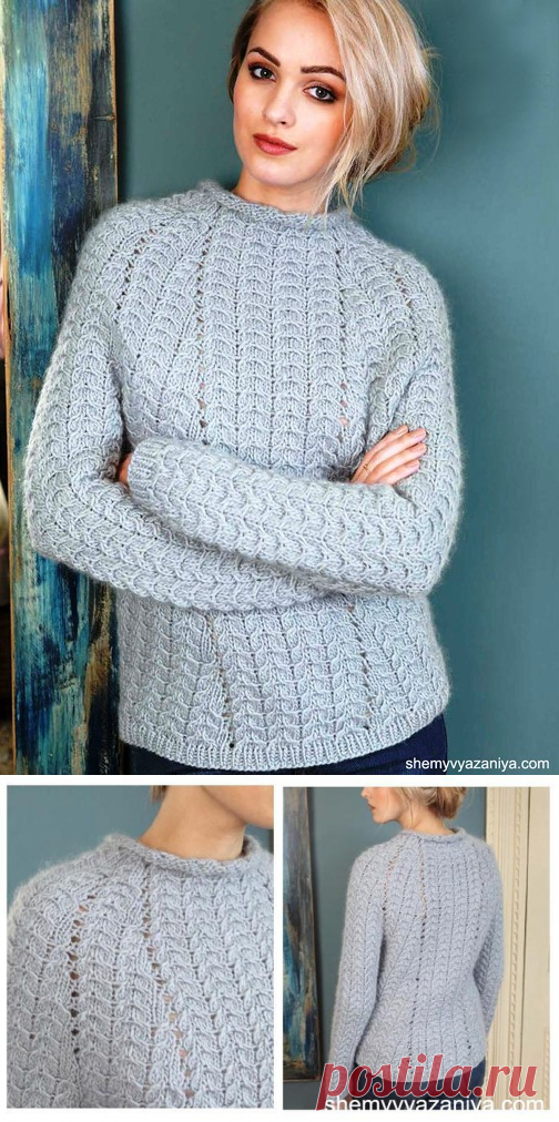 Вязание, пуловер с рукавами летучая мышь, спицами