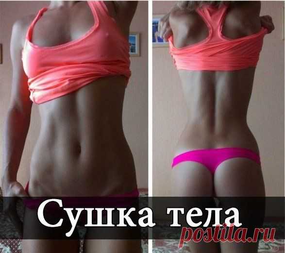 Cушка тела - это способ сделать тело рельефным и подтянутым, включающий в себя диету и упражнения. Благодаря сушке сокращается количество подкожного жира и мышцы становятся более заметными. Сушка тела - диета. Диета заключается в безуглеводном рационе, в сутки можно употреблять не более 50 гр. углеводов. Можно потреблять белковую пищу и правильные жиры. Организм недополучает углеводы и начинает расщеплять жиры. Стоит отметить, что начинать сушку резко нельзя. Нужно постепенно в течении нес...