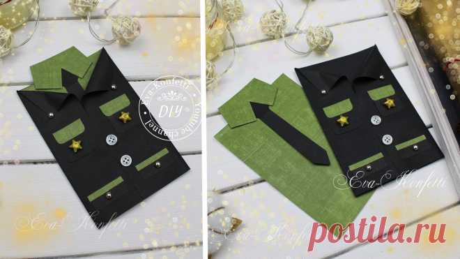 Красивая ОТКРЫТКА РУБАШКА с галстуком и пиджаком своими руками (КОСТЮМЧИК)