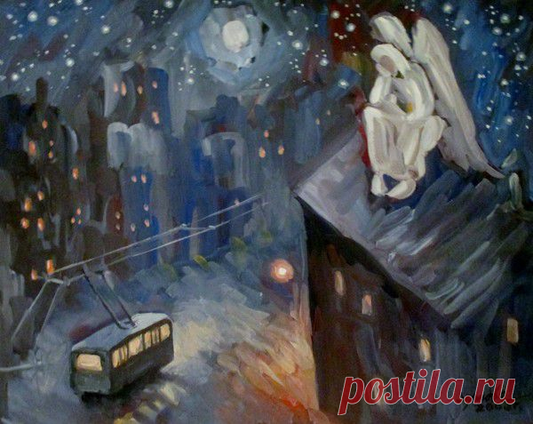 Сообщение (1)Картина Елены Дмитриевны Зерновой "Ангел на крыше". Гуашь.