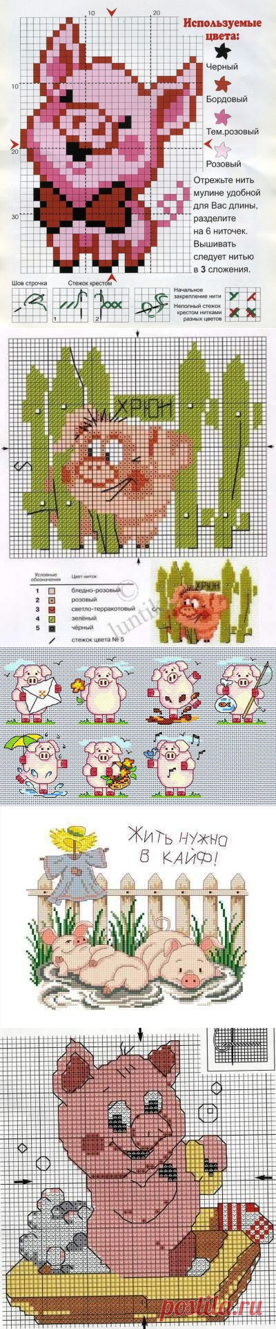 Схема вышивки крестом свиньи – символа 2019 года | новогодняя, крестиком