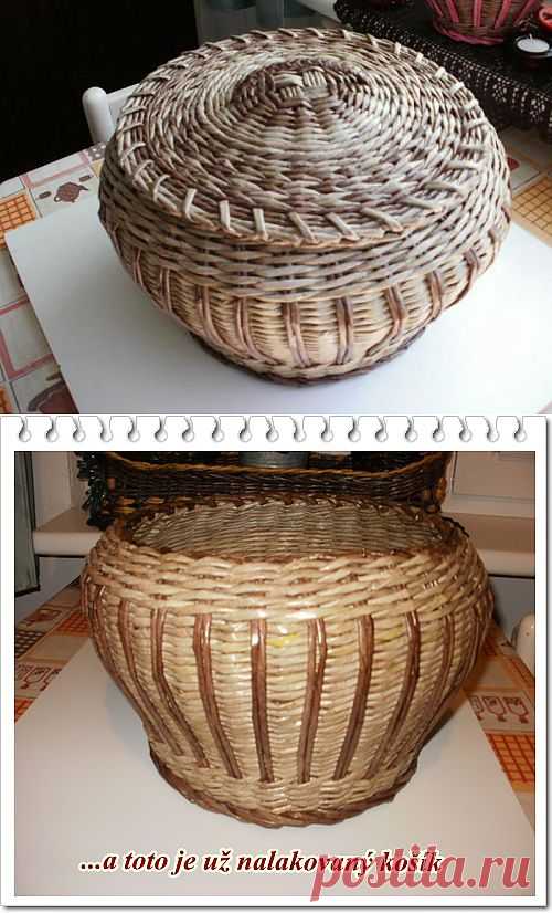 Круглая корзинка с крышкой из газет. Мастер-класс.
