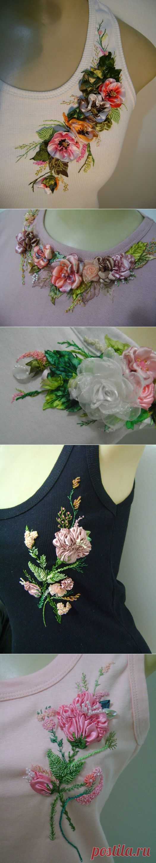 Артесанато Грако. Вышивка лентами на майках и блузах..