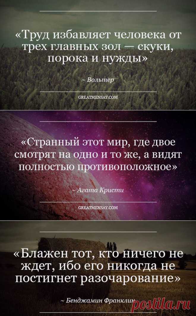 "Труд избавляет человека от трех главных зол - скуки, порока и нужды." Умные цитаты в картинках.