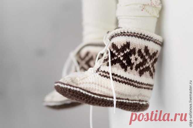 Для вязания подберите подходящую акриловую пряжу, она идеально подходит для вязания детских вещей, не линяет и не дает усадку. Нитки должны быть средней толщины (100-150 м в мотке 50 г). Одного моточка будет достаточно. Также можно использовать остатки ниток для отделки. Кроме пряжи вам будут необходимы: - крючок №3,5; - ножницы; - кусок картона; - 4 плоские пуговицы. Вязание подошвы Наберите цепочку из 10 воздушных петель и 3 петель для подъема и начните...