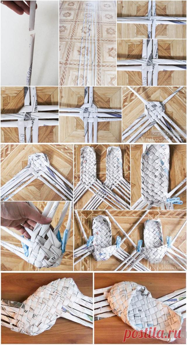 Плетение корзины из газет