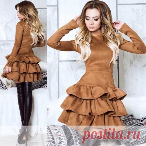 Замшевое платье с тремя воланчиками