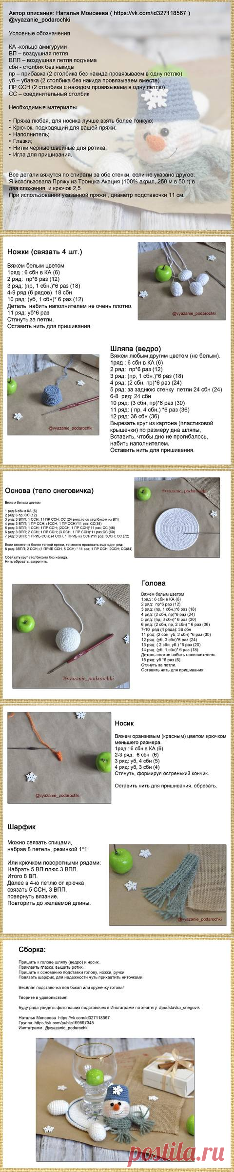 Декор вязаный - Вязаная подставка под бокал "Веселый снеговик"