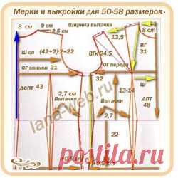 Мерки и выкройки-основы для 50-58 размеров.