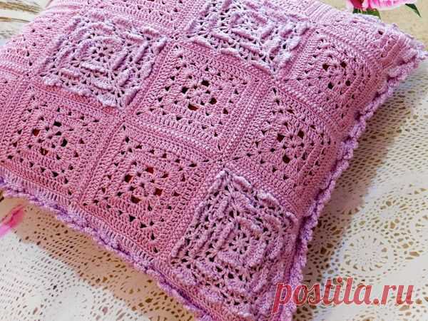 Мастер-класс по вязанию и сборке наволочки из мотивов крючком \"Бабушкин квадрат\"