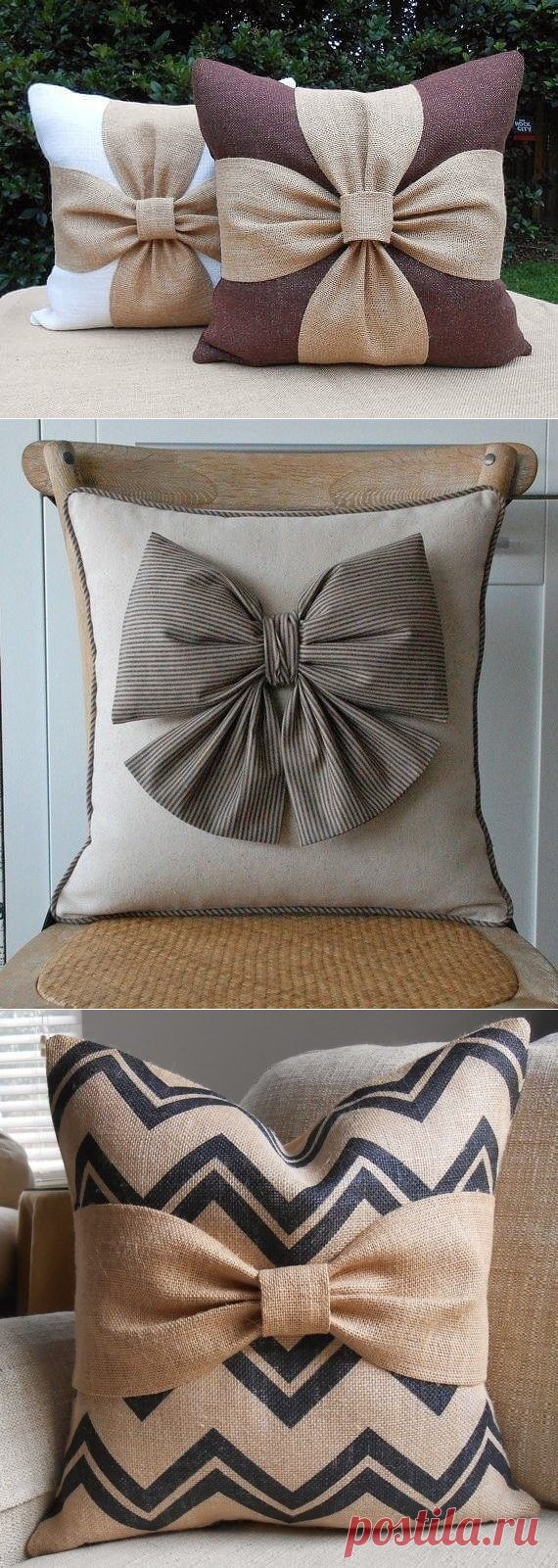 Декоративные подушки с бантиками. Идеи для вдохновения.
