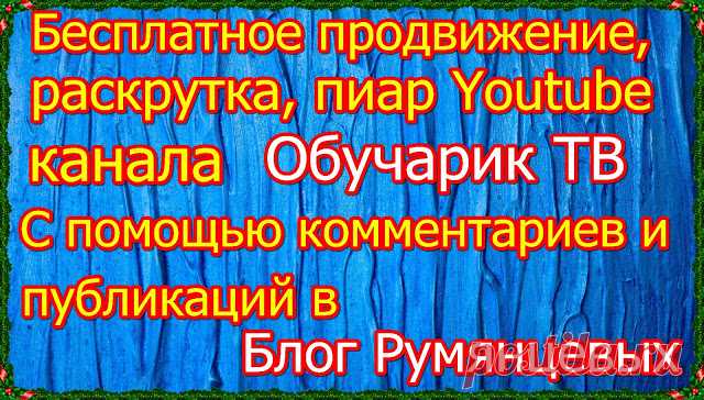Бесплатное продвижение, раскрутка, пиар Youtube канала. С помощью комментариев и публикаций в блог