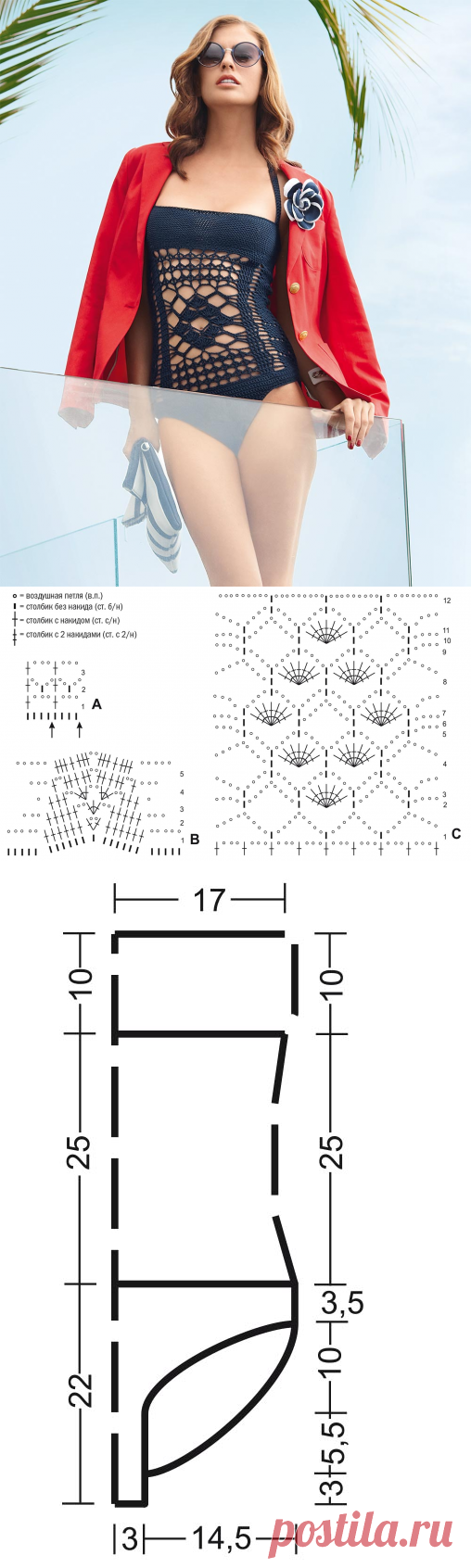 Купальник-танкини - схема вязания крючком. Вяжем Купальники на Verena.ru