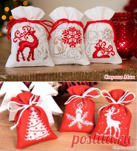 Мешочки с рождественскими мотивами - Мир монохромной вышивки - Страна Мам