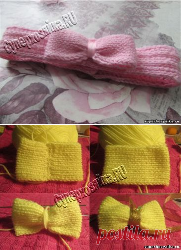 Мастер-класс Повязка спицами с бантом. Вязание спицами для начинающих. Повязка с бантом для девочек