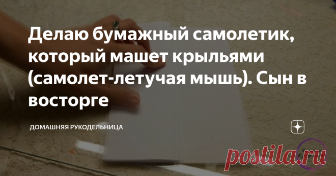 Делаю бумажный самолетик, который машет крыльями (самолет-летучая мышь). Сын в восторге