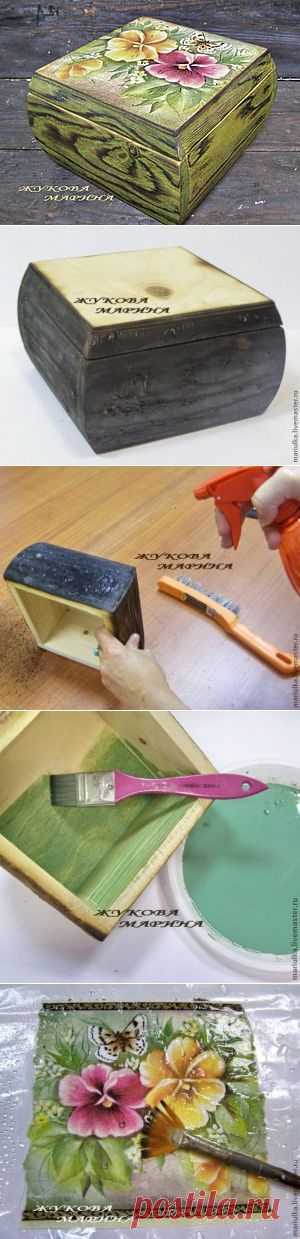 "Этой шкатулке лет сто". Состаривание древесины с помощью обжига, брашировки, воскования и тонировки