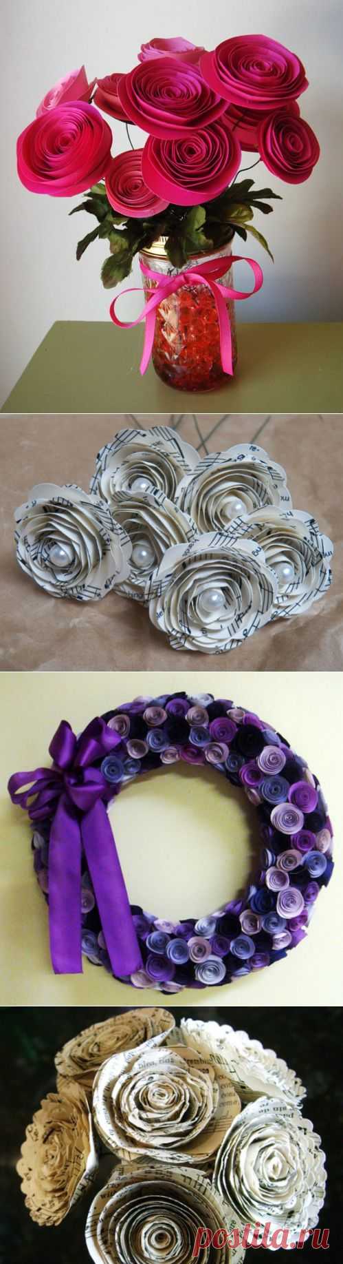 Спиральные розочки из книжных и нотных страниц. Идеи и мастер-класс
